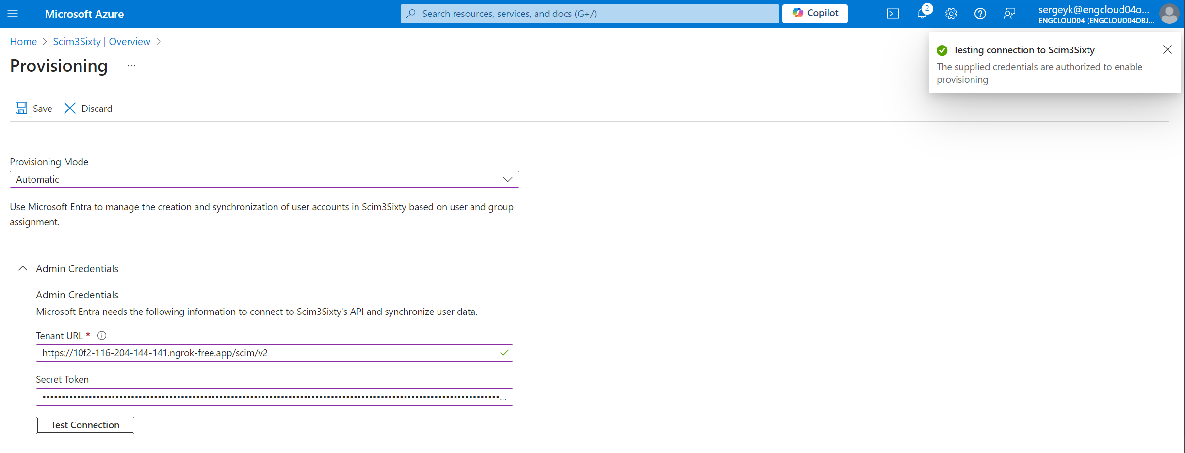 Click test connection to ensure 3Sixty is successfully connected to your new Microsoft Entra App