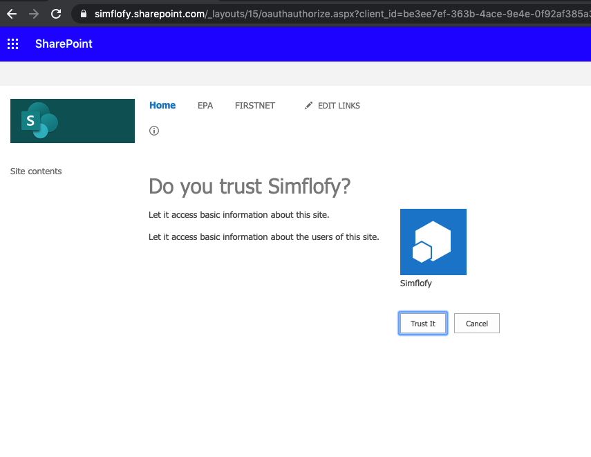 Site Url: [tenant].simflofy.com/sites/test, Value: sites/Test