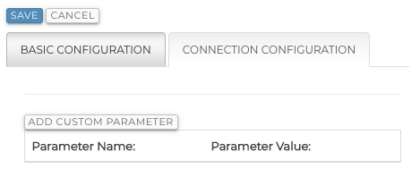 Add Configuration Parameter (Button): Some connectors allow for optional parameters than can be passed via key/value pairs. Most of the time you'll have a form to fill out, but for more advanced features that are situational adding a key/value pair makes sense as it won't clutter up the user interface.