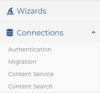 To create a content service connector instance select the Content Service Connections under the Connections header. Click Create New Content Service Connection