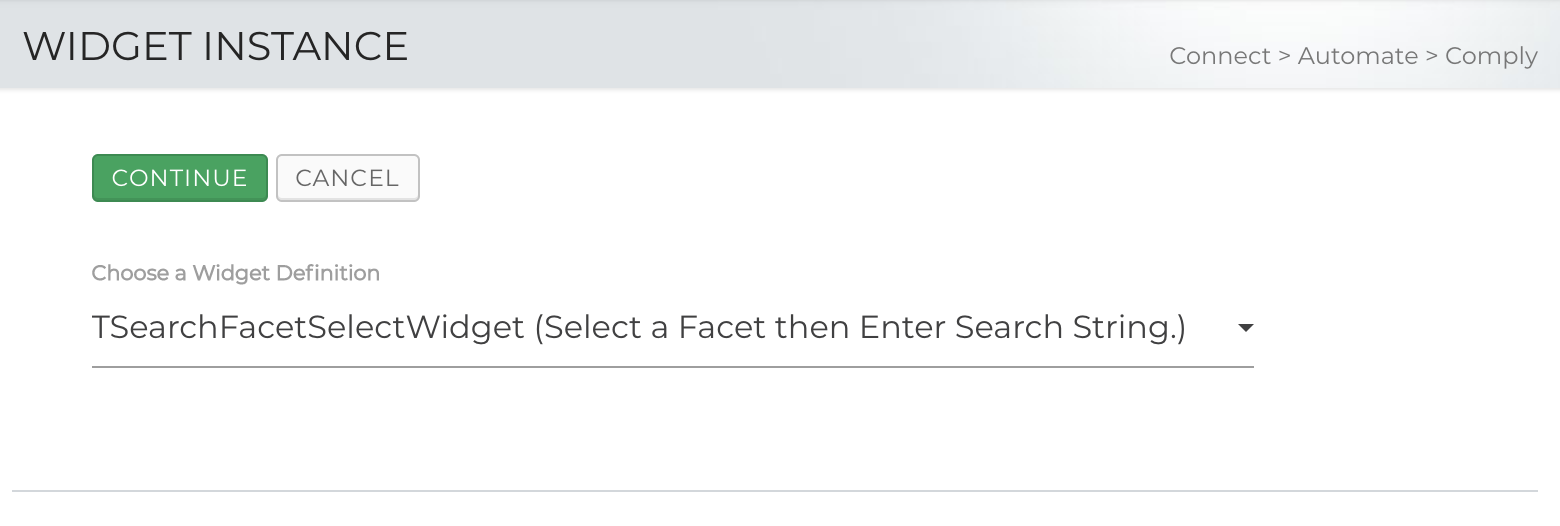 Select the Widget Definition for the new Widget Instance and click the Continue button