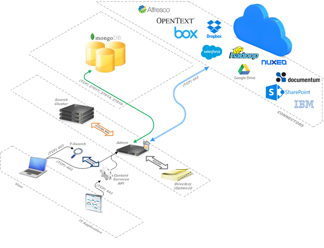 Note: Communicates with CMIS and/or ECM platforms using vendor documented ports and procedures.