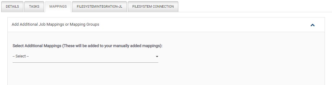In the job's Mappings tab your mapping groups will show up in the Select Additional Mappings drop-down. Read Only versions of the mappings will appear at the bottom of the page, so you won't have to leave to confirm the content of each mapping in the group.