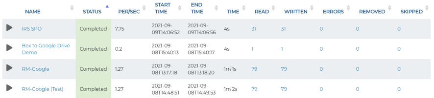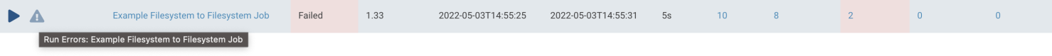 The list of jobs displayed will tell the user the job status, how long the job took to run, how many files have been read, written, have errors, removed and skipped.