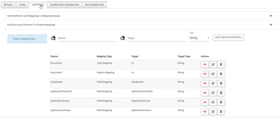 Important: When using the Duplication Detection task in a job the user must make sure that if they are mapping the "isDuplicate" field that they set the Target type to String and not Boolean or they will receive an error that they cannot change text to boolean. If this error is received the user has to drop the index and run the job again.
