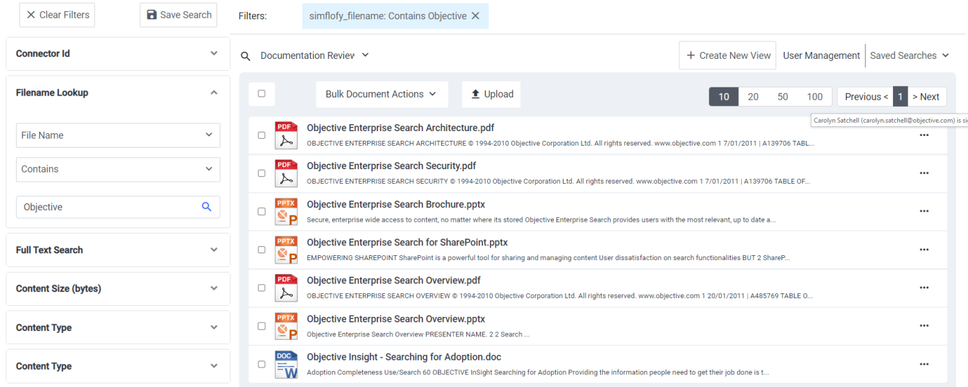 When searching for the word "Objective" the results show us every indexed file with "Objective" in the File Name