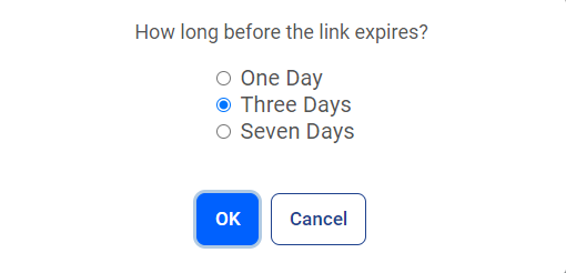 This content actions creates a link to the file that can be shared with others. Users can set the expiration time of the link to one, three or seven days