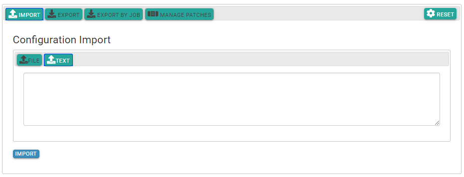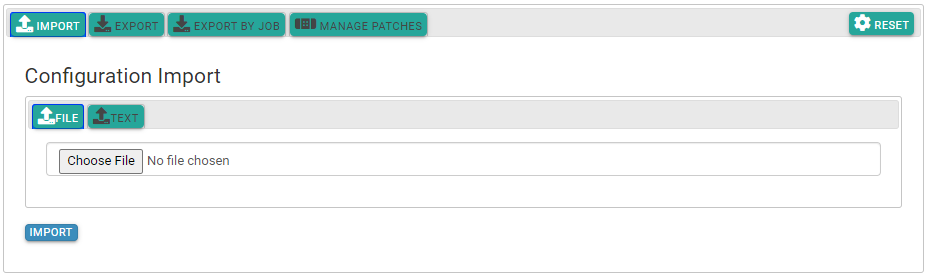 Click File and select the exported JSON configuration file. Users can also import configurations by entering the JSON configurations in the text box by selecting the text button.