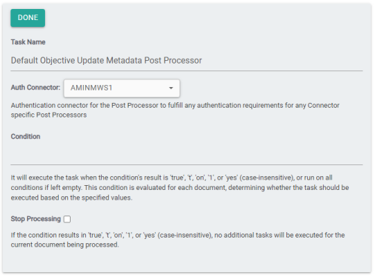 This post processor requires a valid ECM Authentication connector to be provided.