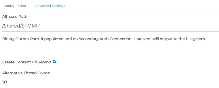 Click the Advanced Settings tab under the tab for your Alfresco Connection