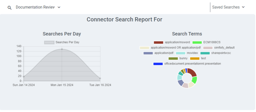 The Dashboard Search Widget is a result set widget for a simple dashboard of charts used to view the count of files searched.