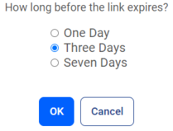 You will be given the option of 1,3 or 7 days as an expiration date for the link.