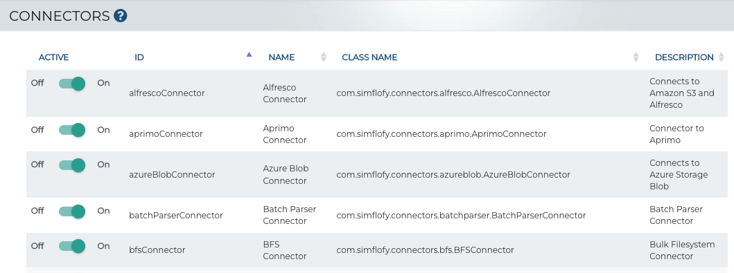 From this page you can enable and disable access to a connector simply by selecting the on/off switch for the desired connection. Once the switch is flipped the page will refresh as the changes are saved.