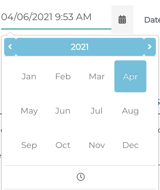 Clicking on the calendar icon will bring up the current dates month and year. You can select a day on this month, or you can go to a different month by using the back arrow which goes to the previous month, or the forward arrow which goes to the next month.