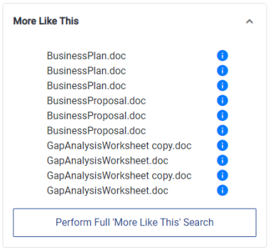 Pressing the button on the Widget will use the sample documents as a reference and will load the results as normal. Note that the widget will still perform an mlt search on the return for this search as well.