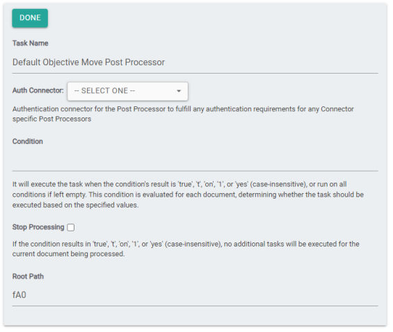This post processor requires a valid ECM Authentication connector to be provided.