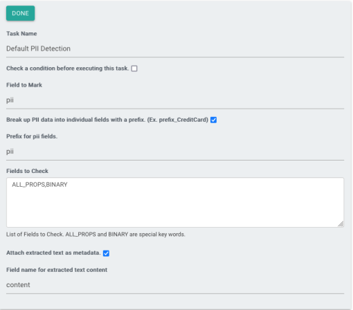 This task will always add the boolean field hasPii for the purposes of mapping and analysis.