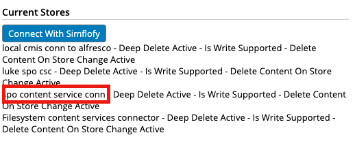 The name of the content service connector you created should appear on this page. Keep in mind this is different from the content service connector ID, which is what you set in afs.tcs.connectorIds.