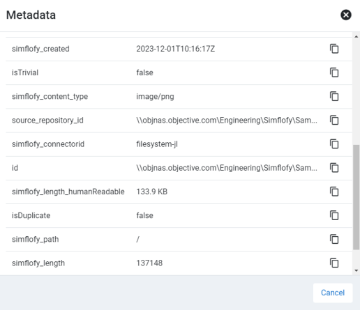 The Metadata Widget is a content action widget added to the body of a content view that will display all metadata for the document that was returned with the search results.