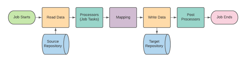 In the diagram below you will see the order of operations for a basic Job in 3Sixty. This job flow is the same whether you are using the job for migration, indexing, or data analytics.
