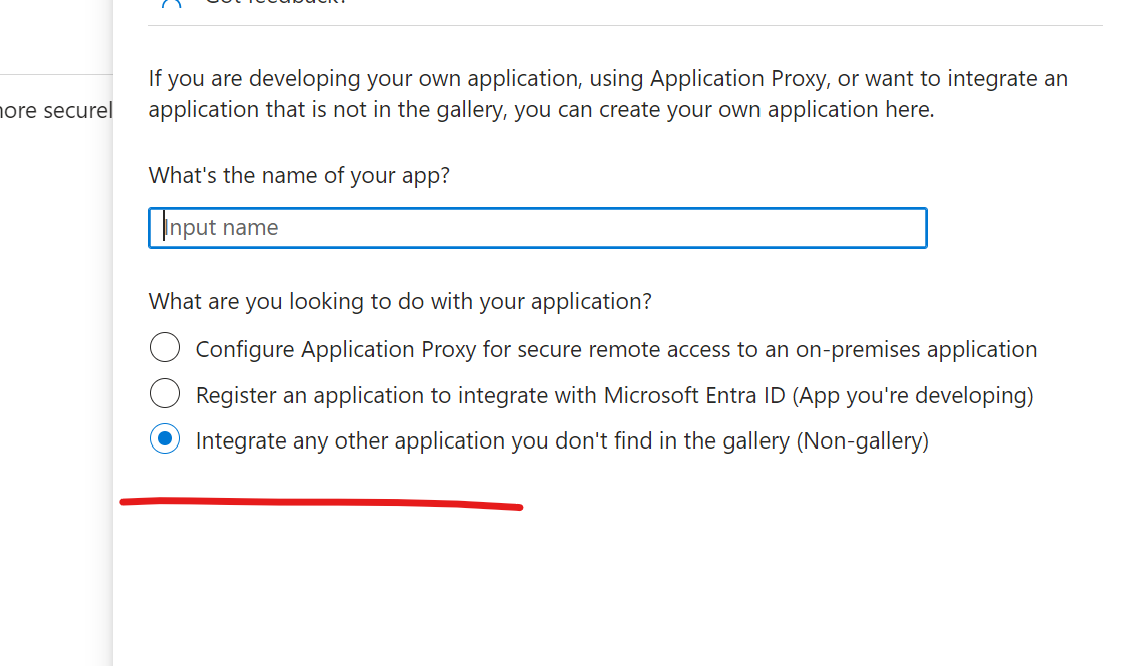 Select “Integrate any other application you don’t find in the gallery (Non-gallery)”