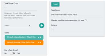 The second task to create is Default Override Folder Path. Use “/” as pattern.