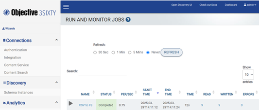 3Sixty CSV Connector for Repo and 3Sixty Filesystem Connector for Output
