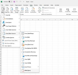 On the Data tab, select Get Data > From Other Sources > Blank Query
