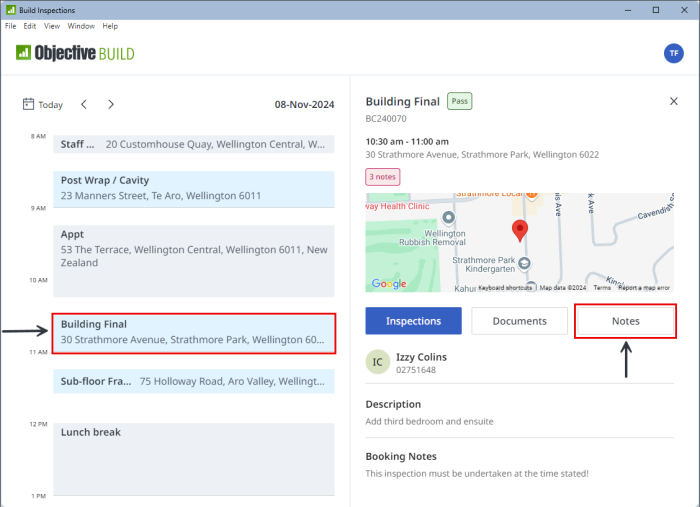 Note: If a note is marked as urgent it will display for every booking. Urgent notes are used to communicate important messages that are not necessarily inspection related e.g. Dog on site.
