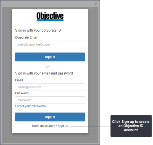 Each user signs up to create an Objective Trapeze account or you can set up a corporate identity for your organisation connected to Windows Active Directory login.