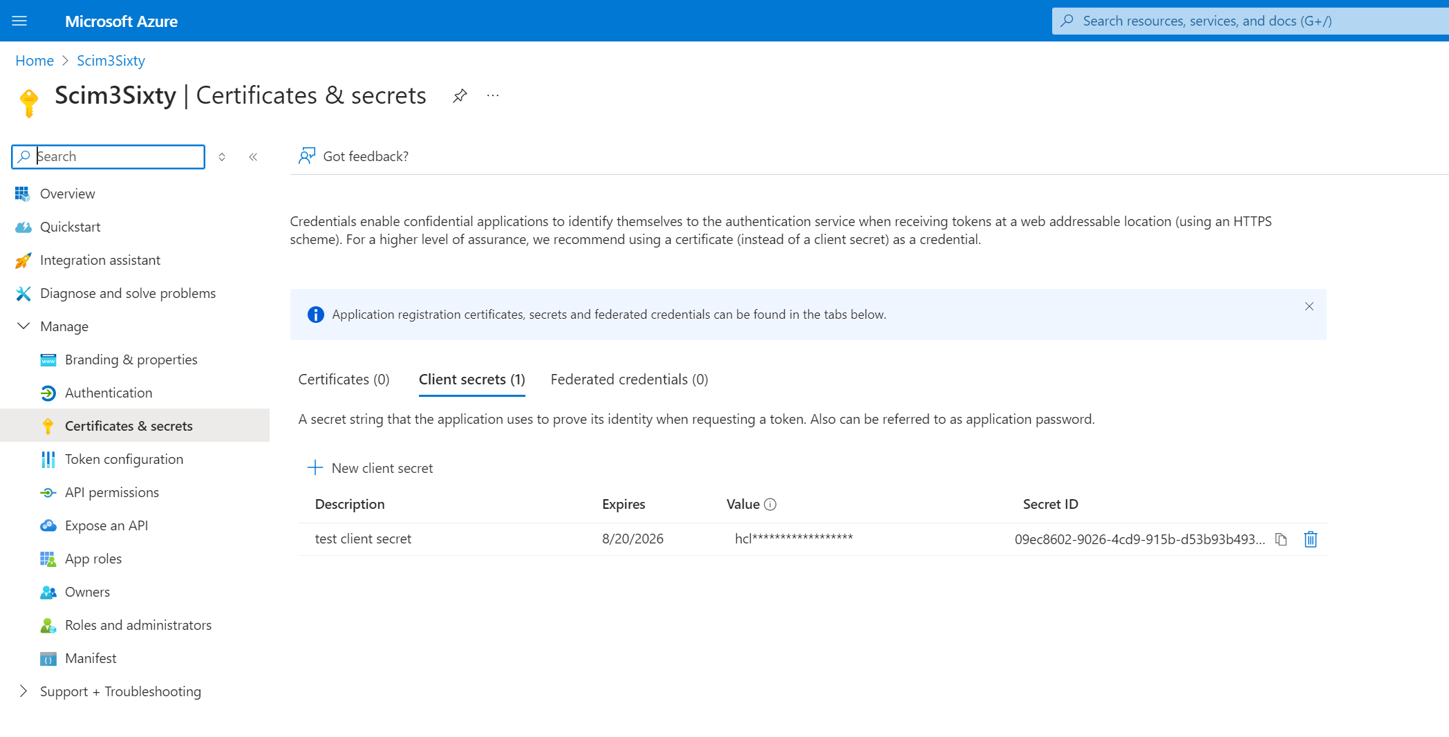 Click test connection to ensure 3Sixty is successfully connected to your new Microsoft Entra App