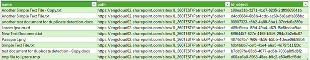 #"Renamed Columns" = Table.RenameColumns(#"Removed Unused Columns",{{"SP Table.UniqueID", "id_object"}, {"Name", "name"}, {"Folder Path", "path"}})